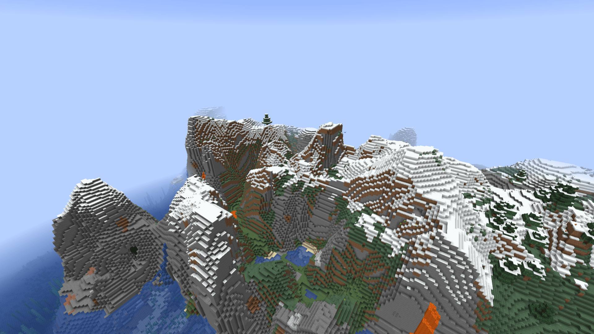 Dazu haben wir uns ein bergiges Gebiet relativ fernab aller anderen Bauten gesucht um niemandem im Weg zu sein bzw. auch genug Platz für Expansionen zu bieten (unten ein paar Bilder des Gebietes).