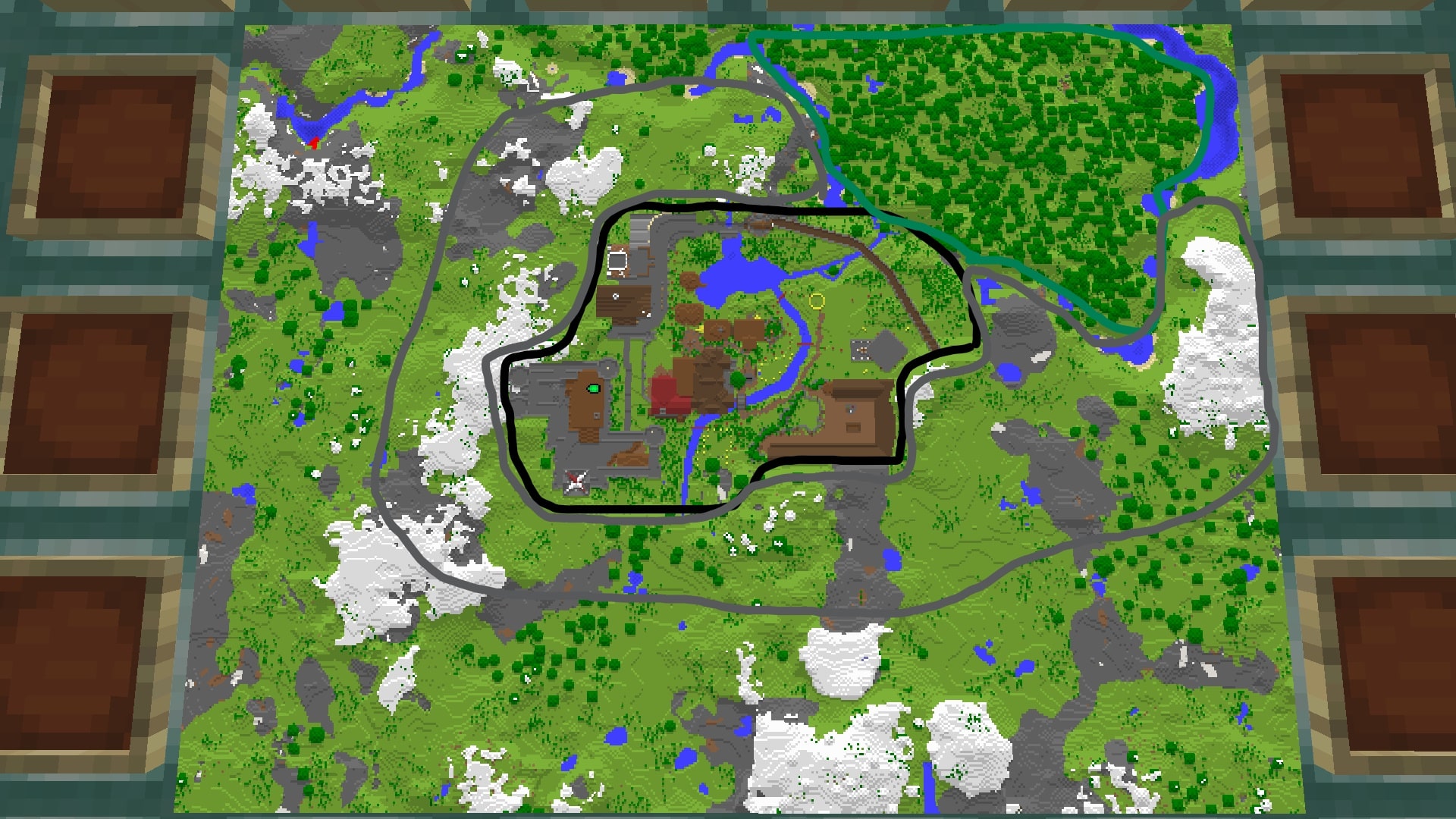 Das auf dem Bild schwarz umrandete Gebiet ist das bisher bebaute Tal, das Gebiet das mir bereits gehört ist noch ein kleines Stück größer. Das grün umrandete Gebiet ist leicht hüglig und ich würde das ganze ländlich bebauen (Felder, Mühle, Scheune etc.). Das grau umrandete Gebiet ist von Natur aus bergig und soll ein etwas größeres Terraforming-Projekt werden, das vermutlich noch Richtung Süden und Westen ausgeweitet wird: ich würde gerne ein etwas größeres und realistischeres Gebirge mit Bergpässen, Almen etc. bauen (dauert natürlich ein bisschen xD ).